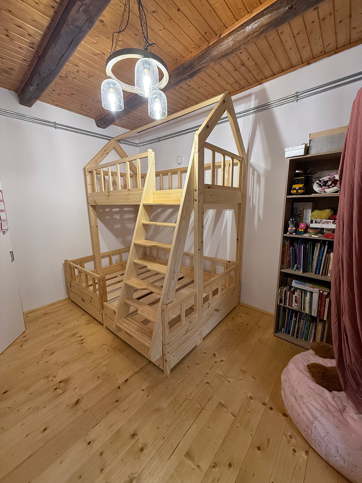 Az ágykeretek vázát 4,4x14cm-es padló adja. A fenti rész 4,4x10cm-es lábakon áll.