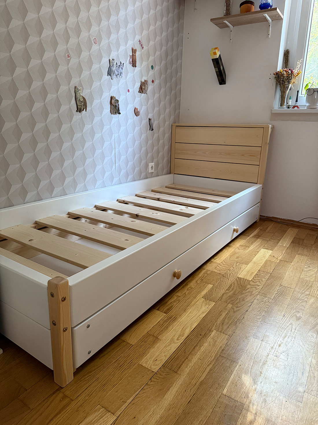 Az alap ár tartalmazza a komplett ágykeretet, ágyrácsokat, csavarokat. Ágyneműtartó külön rendelhető, ami az egész ágy alatt végig húzódik.
