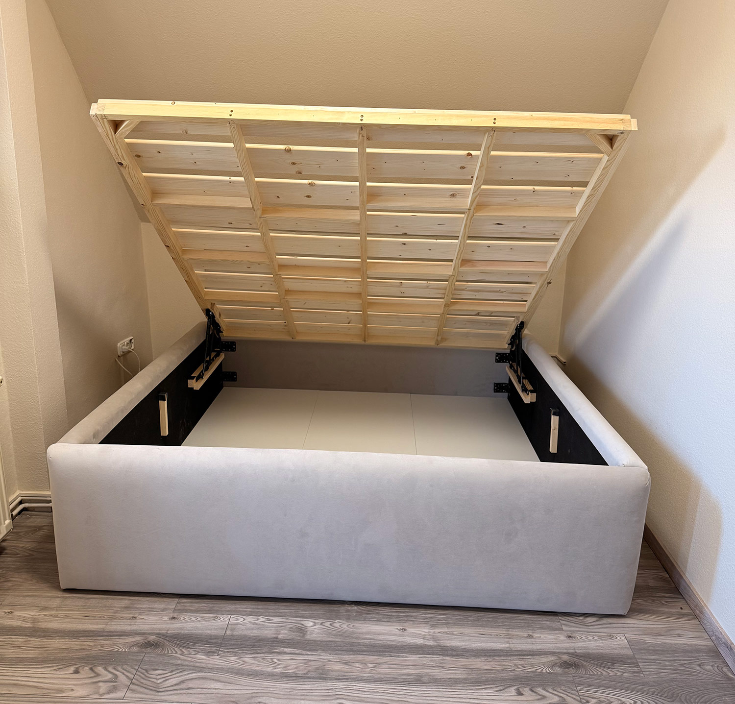 Hosszas unszolás árán rávettetek, hogy készüljön felfelé nyíló ágyneműtartós változat is.